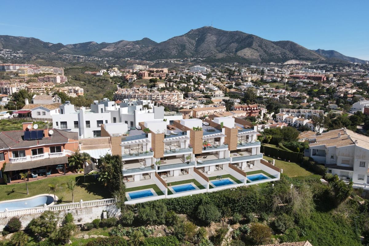 Las villas están diseñadas al más alto nivel y maximizan la funcionalidad de todas las instalaciones y han sido diseñadas con estilo y soluciones escandinavas. Las villas están orientadas hacia el sur y el oeste y tienen un uso eficiente de la luz natural. Este nuevo desarrollo de cuatro villas apoya el desarrollo sostenible y para mantener bajo el impacto ambiental, las villas son energéticamente eficientes y respetuosas con el medio ambiente. Los materiales de construcción son materiales naturales duraderos y de primera calidad, como madera y piedra. Las villas están equipadas con solado termico de circulación de agua y un sistema de ventilación eficiente Las villas de este exclusivo nuevo desarrollo se dividen en tres niveles. Cada villa tiene tres dormitorios y una amplia sala de estar, así como una cocina abierta, integrada y totalmente equipada con una terraza privada donde puede disfrutar del desayuno mientras admira la hermosa vista a la montaña. En el sótano hay un departamento de sauna, un lavadero y un espacio de usos múltiples para un gimnasio o cine, por ejemplo. Las villas cuentan con varias amplias terrazas, una piscina desbordante, plazas de aparcamiento para dos coches y una lujosa terraza en la azotea con cocina exterior, y ofrece impresionantes vistas sobre Fuengirola y el mar Mediterráneo. Cada villa está diseñada con soluciones de lujo, teniendo en cuenta las horas del día y la luz solar. Las villas están equipadas con ascensor, lo que las hace ideales para personas con movilidad reducida. Situado en la colina de Torreblanca, Fuengirola, este concepto único y de alta calidad ofrece impresionantes vistas panorámicas del mar Mediterráneo y el horizonte de Fuengirola. Situado cerca de las ciudades de Fuengirola, Marbella y Málaga, Vista Linda residencial se encuentra en un sitio perfecta para disfrutar de la cultura, la gastronomía, las playas, el deporte y las compras en Andalucía. Todos los servicios y comercios se encuentran a poca distancia, la playa a tan solo 5 minutos y el Aeropuerto de Málaga a 15 minutos en coche. Varias escuelas internacionales también se encuentran en la zona.